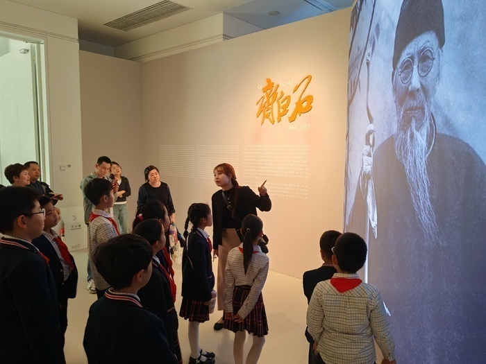 3月28日下午,一场别开生面的美育实践活动在山东美术馆展开。来自济南市历下区燕山小学教育集团三所成员校——济南市历下区燕山小学、济南市历下区龙鼎实验学校、济南市历下区玖玺小学的17名学生及家长,在新黄河少年团的组织带领下,走进山东美术馆,在艺术殿堂里开启了一场与齐白石爷爷的跨时空对话。