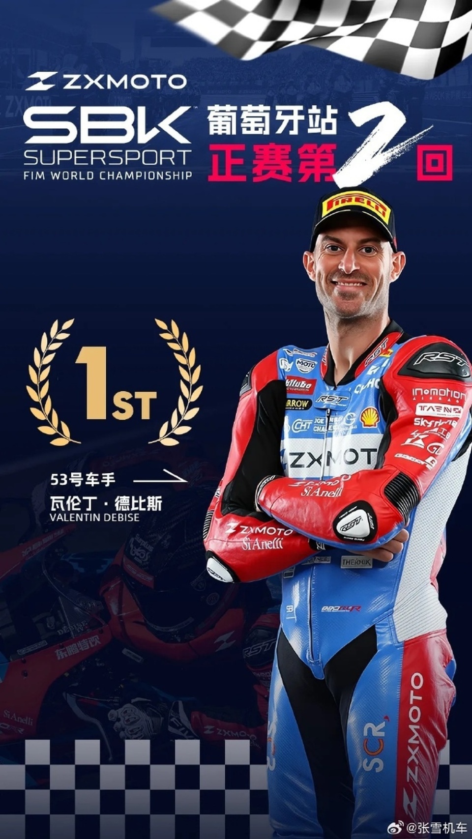 当地时间3月28日,中国摩托车品牌张雪机车(ZXMOTO)在世界顶级赛事WSBK(世界超级摩托车锦标赛)葡萄牙站中创造历史,其厂队车手瓦伦丁·德比斯以领先第二名近4秒的优势夺冠,拿下中国品牌首个大排量摩托车冠军,打破欧美日摩托厂商对WSBK中量级组别长达百年的垄断。3月29日,在葡萄牙站第二场比赛中,张雪机车再次夺得冠军。