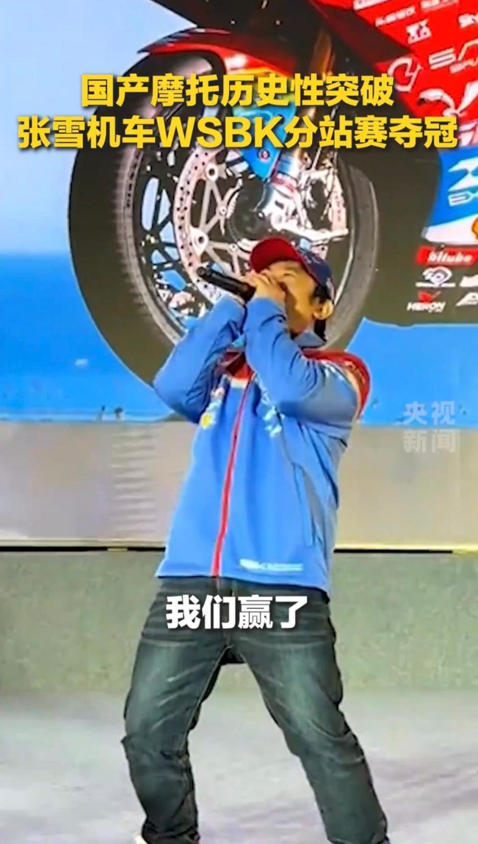 张雪机车获得WSBK葡萄牙站冠军(图源:央视视频截图)