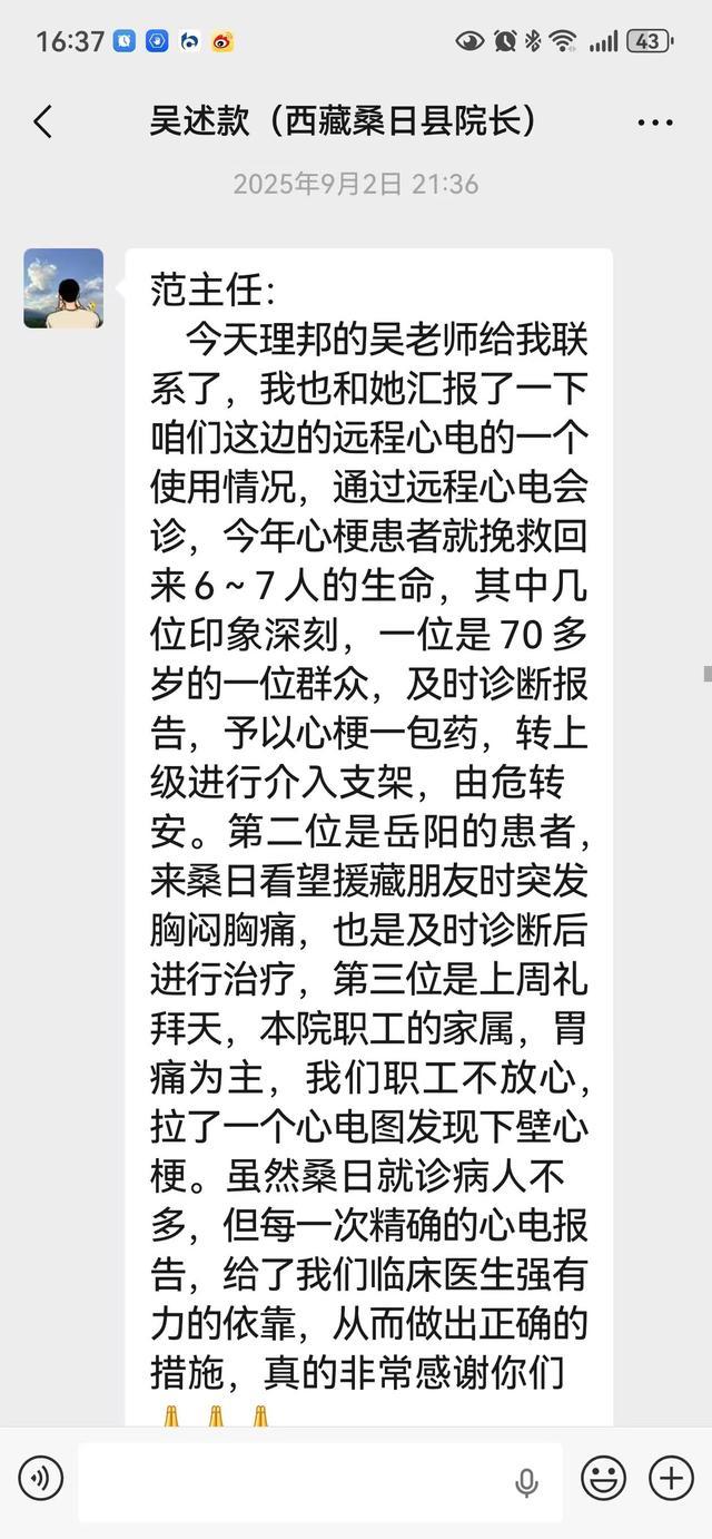 ▲湖南省人民医院远程心电会诊中心最远辐射至西藏桑日县当地医院反馈,一年挽救多名心梗患者。