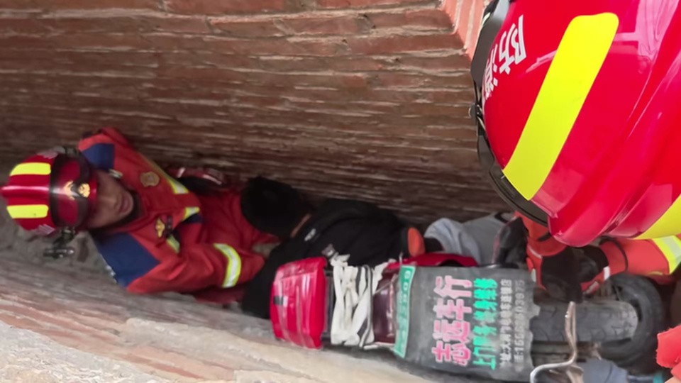 3月28日下午,在济南市南部山区仲宫街道二仙村,一名儿童骑电动车不慎跌入墙缝,无法脱困。接到报警后,济南市消防救援支队仲宫消防救援站救援人员火速出动。