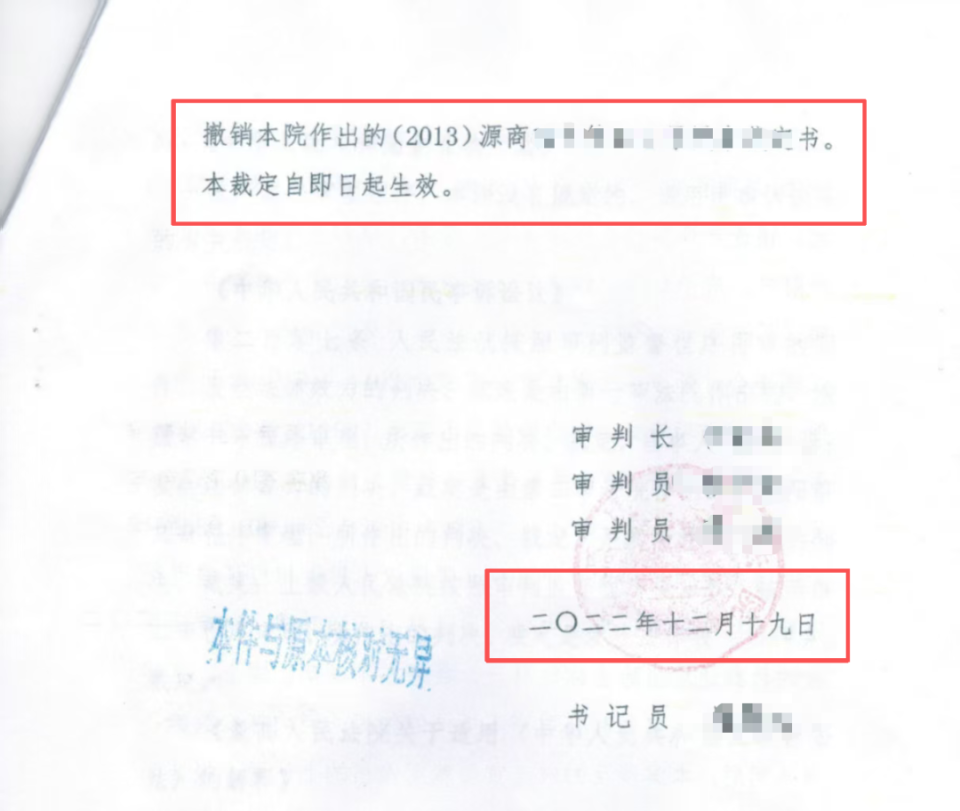 转机出现在2022年。随着胡女士多次投诉和情况变化,肇源县人民法院于2022年12月19日重新作出裁定:撤销2013年宣告房地产公司破产的裁定。