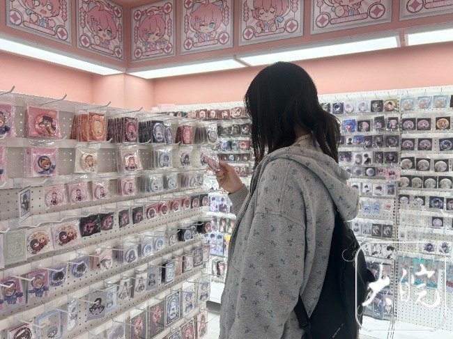 工作日午后,记者走进位于合肥淮河路步行街的百盛商场,扑面而来的是青春洋溢的蓬勃气息。三五成群的年轻人穿梭于各家谷子店,低头挑选徽章、亚克力立牌、盲盒等周边,手中提着印满动漫角色的购物袋。身着cosplay服装的年轻人在店铺前打卡、交流,让商场充满青春活力。这座曾以美妆、服饰、餐饮为主的老牌商场,已蜕变为二次元“谷子”消费聚集地。