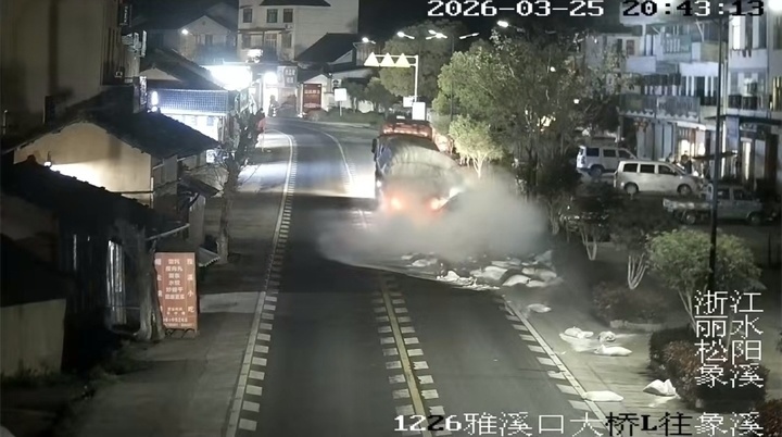 3月25日20时43分,一辆大货车驶经235国道浙江丽水市松阳县象溪镇段,车上突然沿路掉下200多袋面粉。道路监控视频显示,10分钟后,路边象溪镇的10多位村民来到现场,纷纷扛起一袋袋面粉回村里。