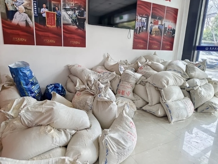 次日,派出所的全体民辅警从村民手中接收了这些面粉,利用自己的中午休息时间将所有面粉统一搬运安置在派出所空房间内。