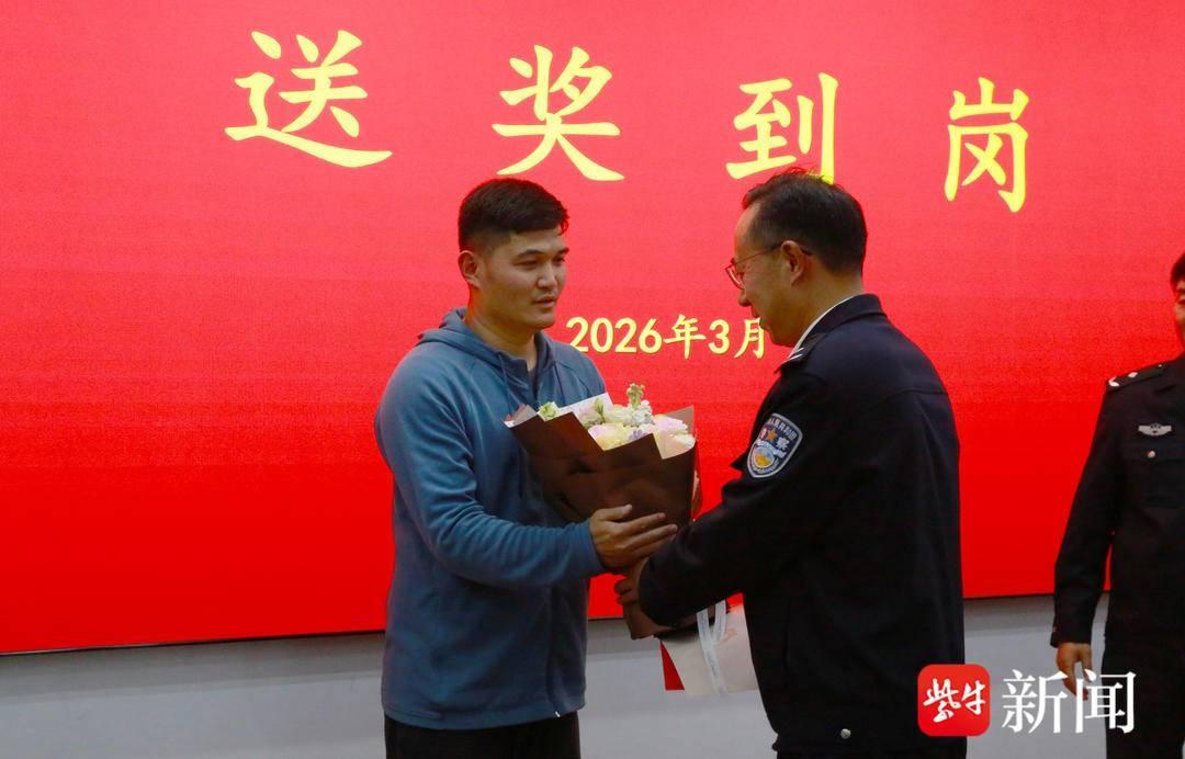 28日扬子晚报紫牛新闻报道南京一名5岁男孩与奶奶走散后独自骑儿童车回家误入高速公路,被南京交警无人机及时发现,幸好路过司机孙先生及时阻拦守护男孩。30日下午,南京市见义勇为基金会和南京市公安局交通管理局相关负责人至南京建邺城建集团建华公司,为该公司员工孙浩送上见义勇为专项奖励。