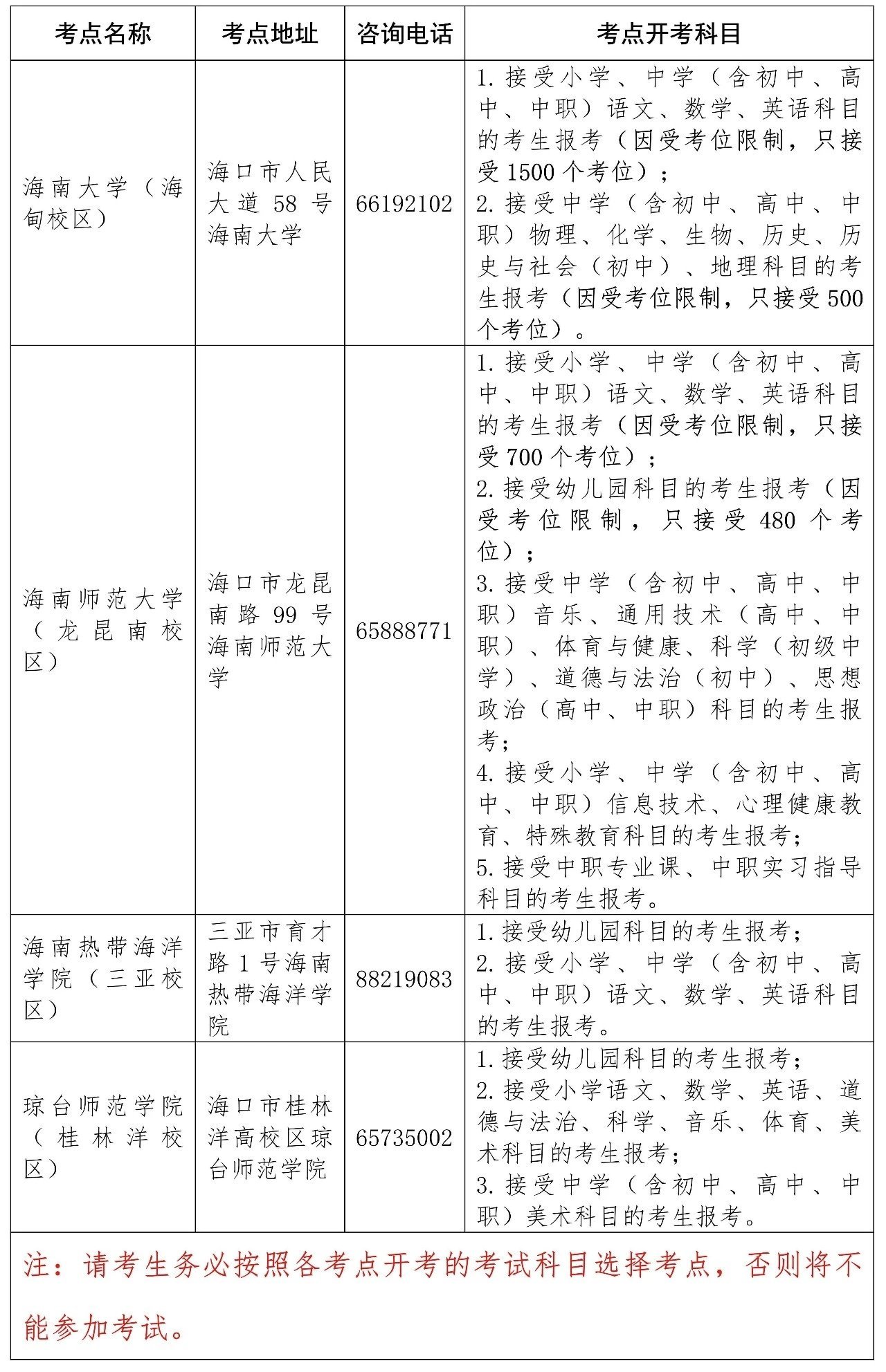 海南省2026年上半年中小学教师资格考试(面试)共设海南大学(海甸校区)、海南师范大学(龙昆南校区)、海南热带海洋学院(三亚校区)和琼台师范学院(桂林洋校区)等4个考点,现将考点信息公布如下: