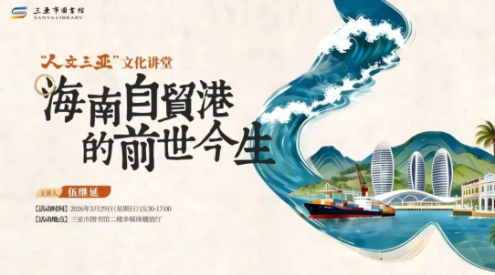 3月29日下午,第17期“人文三亚文化讲堂”在三亚市图书馆二楼多功能播放厅举行。本期讲堂邀请中国商业文化研究会副会长伍继延担任主讲嘉宾,以《“海南自贸港”的前世今生》为题,为现场观众带来了一场兼具历史深度、实践视角与前瞻视野的分享。活动由三亚市旅游和文化广电体育局指导,三亚市公共文化中心主办,三亚市图书馆及三亚市人文地理学会承办。