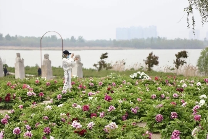 太白牡丹园坐落于太白湖景区西侧,占地1000亩,凭借“水上看牡丹、湖畔赏国色”的独有景观,成为济宁春日文旅的标志性打卡地。园区依湖而建,亭台楼榭错落有致,湖光水色与牡丹花海交相辉映,一步一景、诗意盎然,让游人在赏牡丹、观湖景中,沉浸式感受春日的浪漫与惬意。作为花会的核心载体,园区精心培育了九大色系、十大花型、1000余种牡丹精品,栽植牡丹60余万株、芍药20余万株,涵盖洛阳红、雪映桃花、菱花湛露、霓虹焕彩、鲁粉等知名品种,数量众多、品种齐全,全方位展现牡丹的雍容华贵与多样风姿。