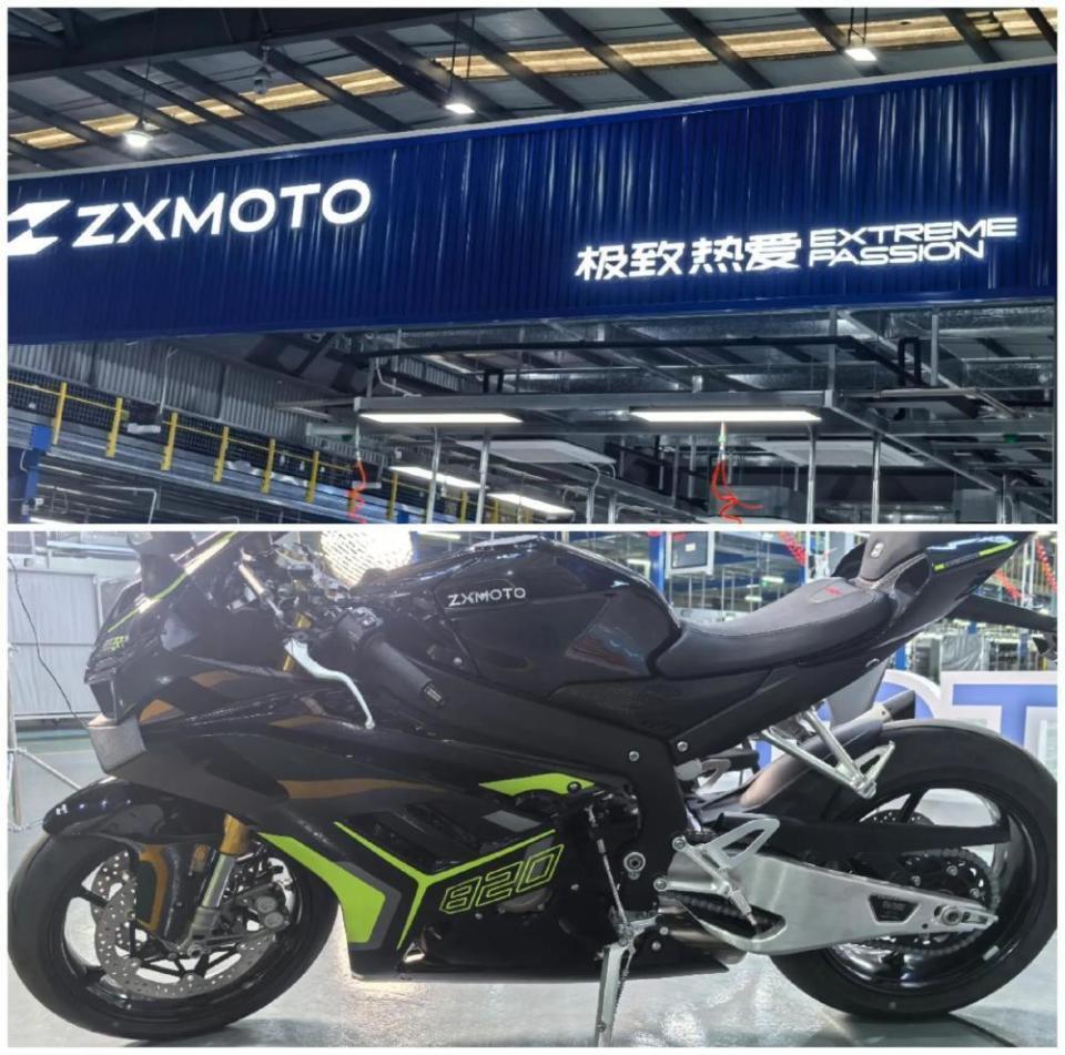 张雪机车的工厂,占地面积不大,厂房可以一眼望穿,厂里放着黑白两色卖得最好的车型500RR(500RR是张雪机车的主力车型)。当然,这里还有本次葡萄牙站夺冠的量产车原型820RR(参赛车辆型号为820RR-RS),机车上面的“ZXMOTO”喷涂格外耀眼醒目。