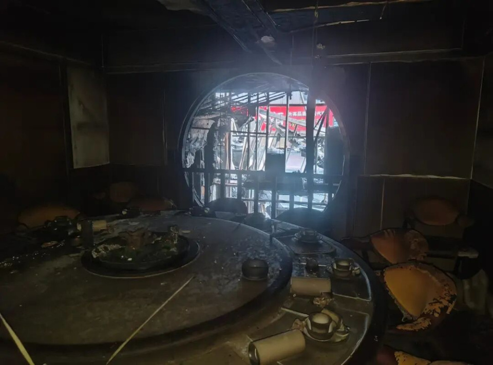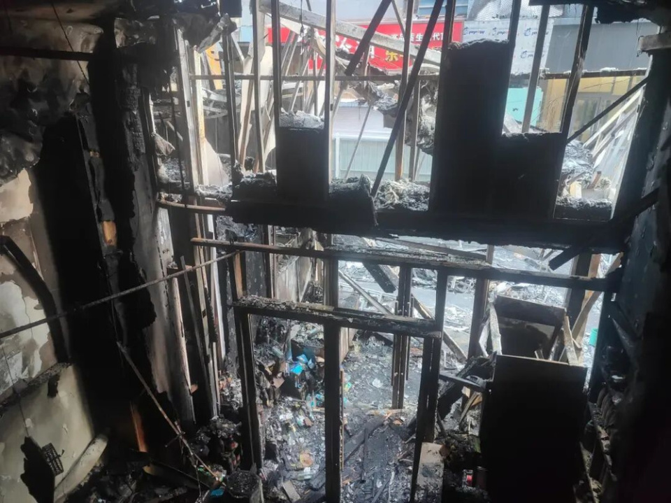 两家饭店的二楼为封闭结构,没有其他通道前往外部。从内部结构看,两家饭店的纵深并不长,但火情发生后有很多顾客被困在此。目击者称,最开始在大龙烧烤炒菜店顶部,蹿出数米高的火舌,引燃了大楼东侧外立面。火灾发展太过迅速,这可能是导致一些顾客未能及时逃出的原因。