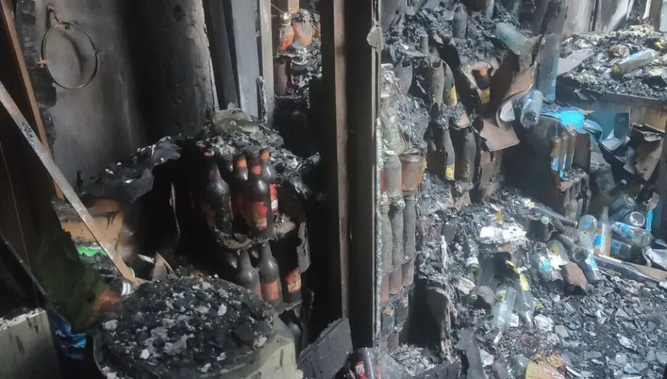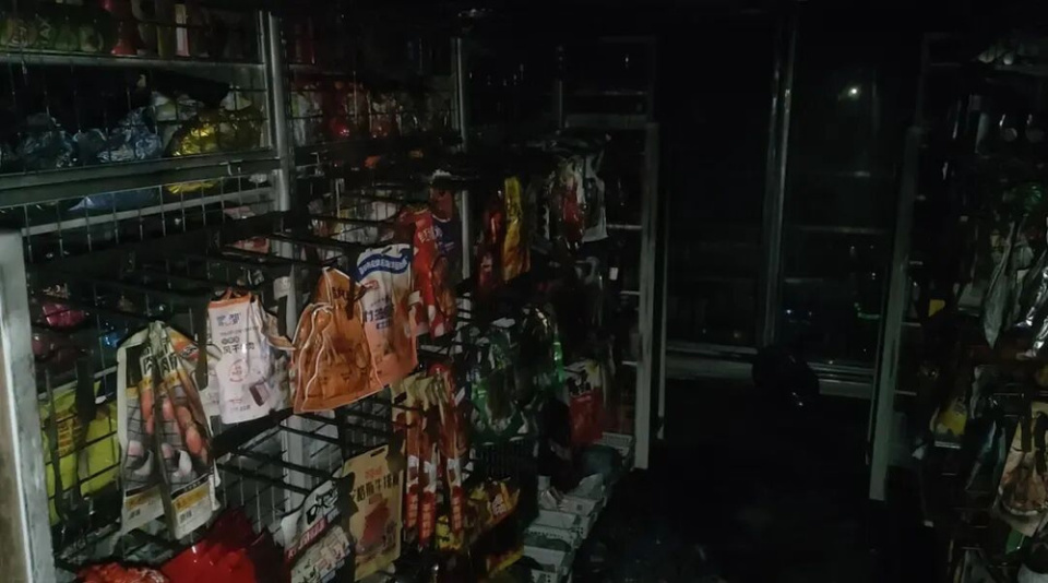 记者发现在事故中损毁最严重的是底商一家便利店和两家饭店——转角楼川菜馆和大龙烧烤炒菜店,不过从内部看,即使最严重的三家店铺都没有大面积过火,内部物件被浓烟熏黑。