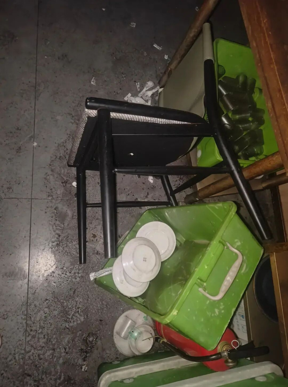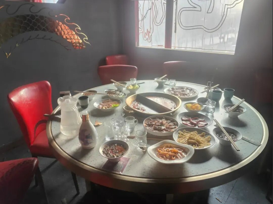 火锅店内还没吃完的晚餐,从内部看,当时其受到的影响明显要小。