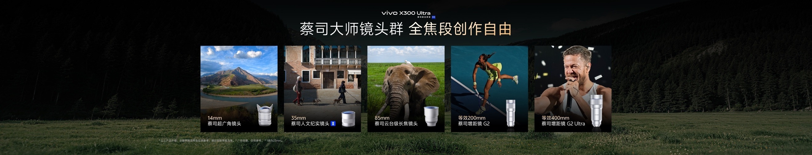 为了让用户实现全场景又稳又准拿下每个瞬间,vivo X300 Ultra还带来两款外挂镜头。一个是被称为“大炮400”的vivo蔡司增距镜G2 Ultra,内部采用2组15片的精密光学结构,支持等效400mm/17.4x光学直出2亿像素,叠加85mm蔡司云台级长焦镜头的超大底,蓝图高刷追焦引擎的超快追焦、3°OIS光学防抖的超稳防抖,「专业V单」既是非洲拍动物的出片利器,也是超长焦观演观赛神器;另一个是被称为“口红200”的vivo蔡司增距镜G2,体积小巧便携,支持等效200mm/8.7x光学直出2亿像素,叠加85mm镜头3°OIS光学防抖实现CIPA 6.5,超清60fps高刷追焦,不仅轻还很强。全大底的蔡司大师镜头群,还支持风光、普通拍照模式下,全焦段、全亮度段直出2500万像素,让V单拥有全高画质。此外,对于追求更极致操控感的创作者,vivo X300 Ultra还升级了专业影像手柄套装,全新的外观设计、按键布局、快捷功能,将复杂的参数调整,变得更直观、简单且充满乐趣,让用户可以随时随地“出发,去创作”。