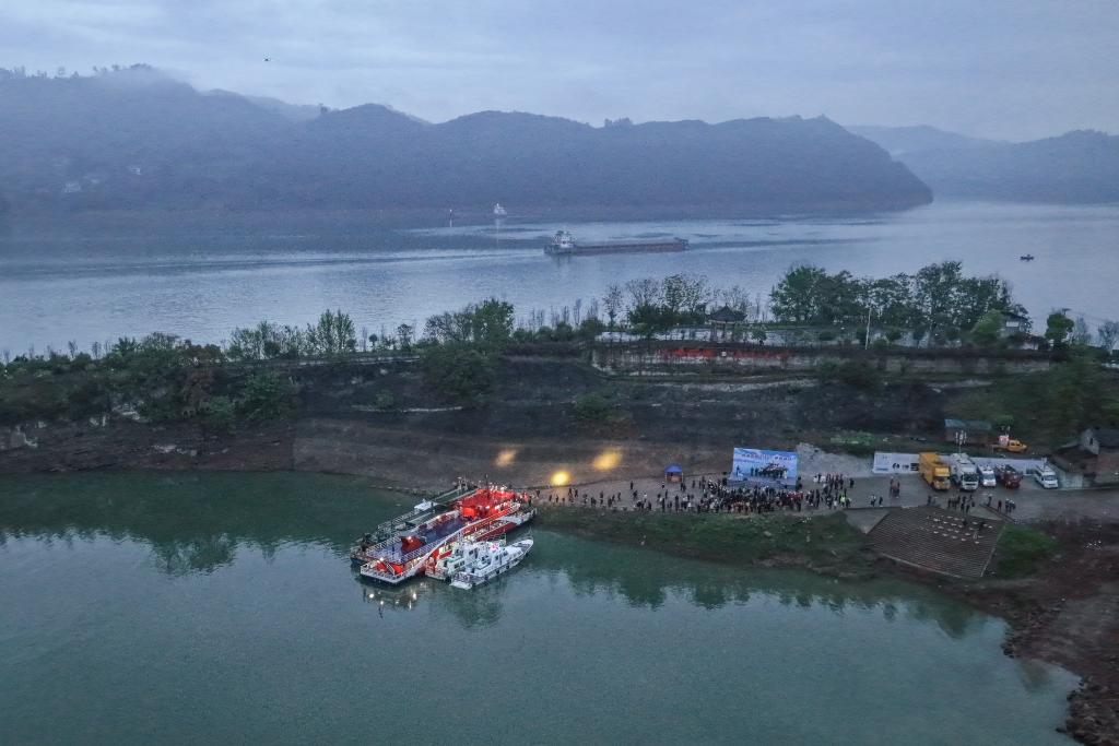 3月31日,“新渝忠客2180”(中)与“渝忠客2180”停靠在重庆忠县洋渡码头(无人机照片)。新华社记者 黄伟 摄
