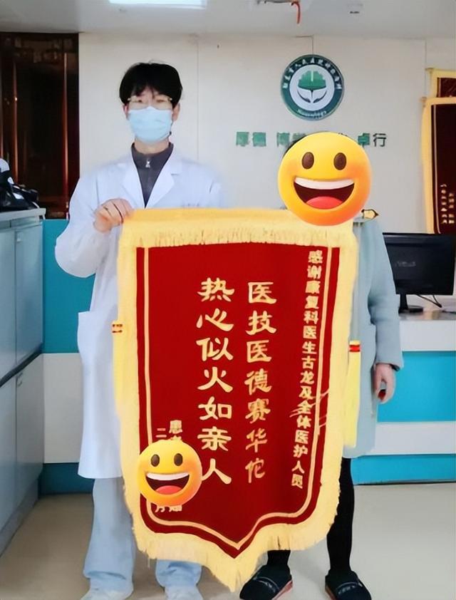 在患者积极配合下,上下肢功能明显恢复,坐位时上肢可抗部分阻力抬升至正常角度,手指功能恢复,可独立行走。患者特送锦旗,感谢康复科全体医护人员的悉心付出。