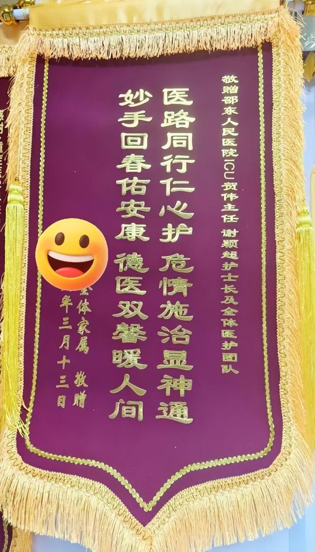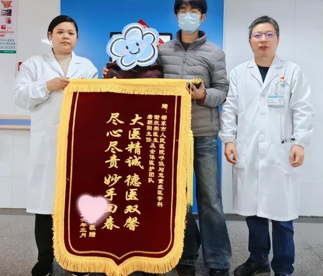 时隔十日,3月13日,申医师及家属再次带着绣有“医路同行仁心护,危情施治显神通;妙手回春佑安康,德医双馨暖人间”的锦旗来到科室。