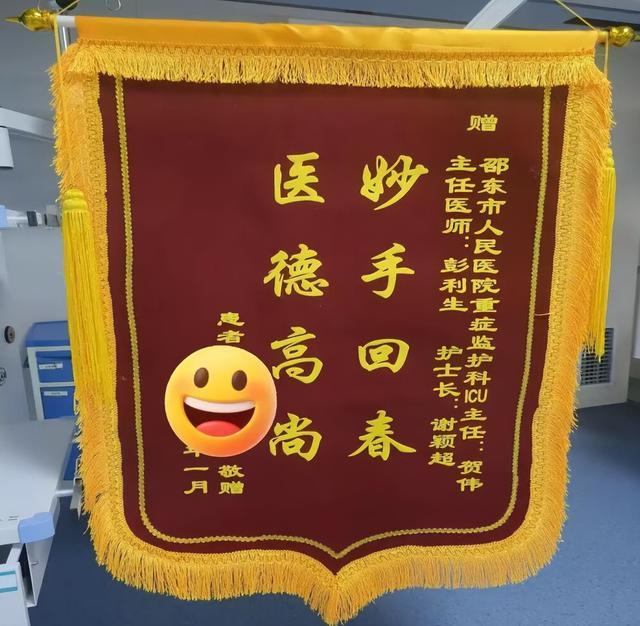 3月2日,家住灵官殿镇的罗叔叔(化名)委派家人,为神内ICU送来一面锦旗。54岁的罗叔叔常年在广东工作,春节前返乡。2月11日14时,他突发言语不清伴右侧乏力,起初未在意,夜间病情加重,言语不能、行走需搀扶、理解能力下降,20时16分紧急送至邵东市人民医院。