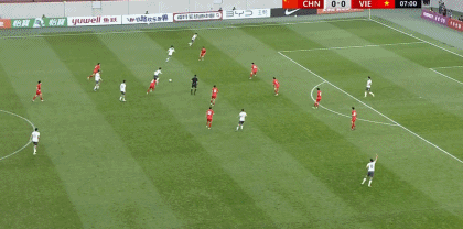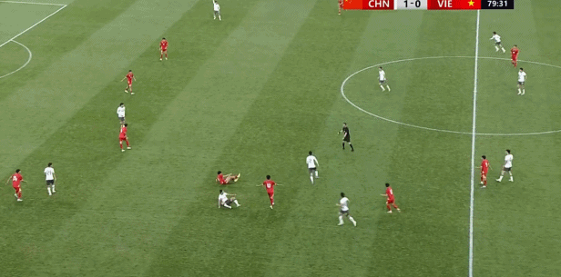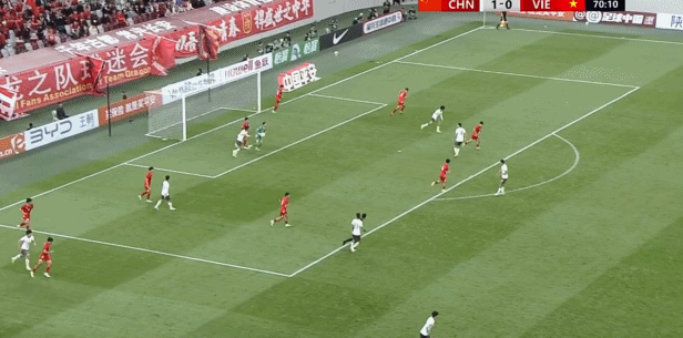 第71分钟,越南U23快速反击,阮邓阳突入禁区打门被挡