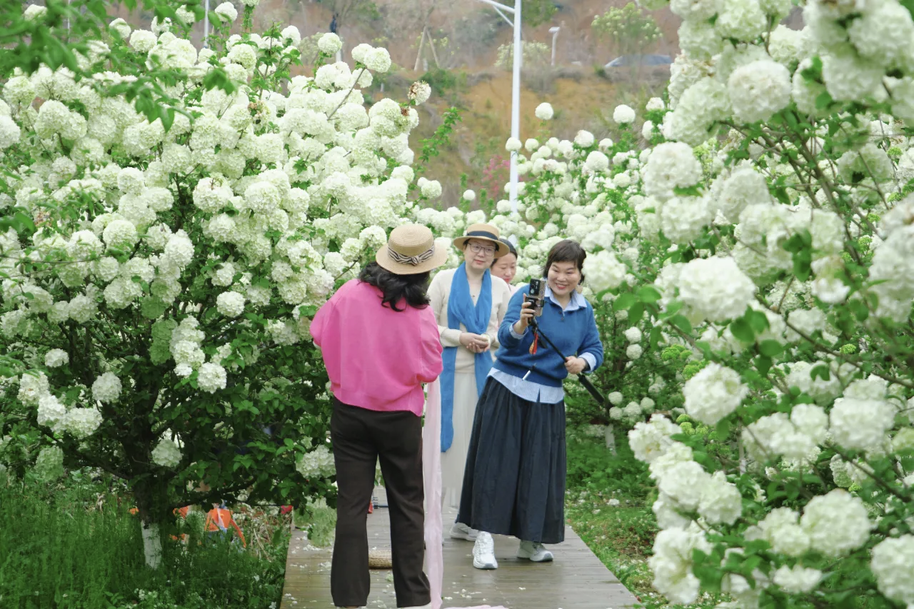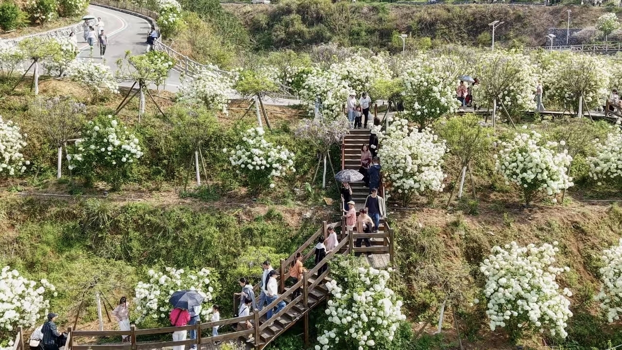 目前,博览园内万余株中华木绣球已进入盛花期,洁白花球缀满枝头,静候游客前来打卡,共赴春日之约。(陈若薇)