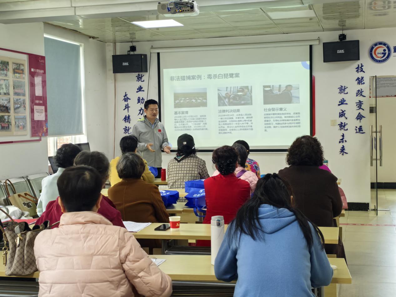 宣讲现场氛围热烈、内容鲜活,党校工作人员与2026年第1期省直单位青年干部培训班志愿者聚焦法治根基、反诈防范、幼儿安全、见义勇为、生态环境、野生动物保护等重点,精准开展宣传宣讲,真正让法治知识听得懂、安全技能用得上。围绕《江西省平安建设条例》,结合身边典型案例解读法条适用场景与实践要求,让抽象法律通俗易懂;深入推进常态化扫黑除恶普法宣传,细致讲解《中华人民共和国反有组织犯罪法》,剖析新型涉黑涉恶违法犯罪的隐蔽特征,引导群众主动抵制、积极举报;聚焦生态文明建设,重点解读《中华人民共和国野生动物保护法》,用真实案例敲响警钟,阐明非法捕猎、交易野生动物及破坏生态的法律后果,号召居民共同守护绿水青山。守护群众“钱袋子”,反诈宣传暖人心,专门设置反电诈互动科普区,针对刷单、冒充客服、养老诈骗等高发类型,现场拆解诈骗套路、讲解防范技巧,手把手指导居民下载注册国家反诈中心APP,熟练使用96110预警劝阻专线,发放反诈宣传资料,让防骗知识入脑入心,切实筑牢全民反诈“防护墙”。