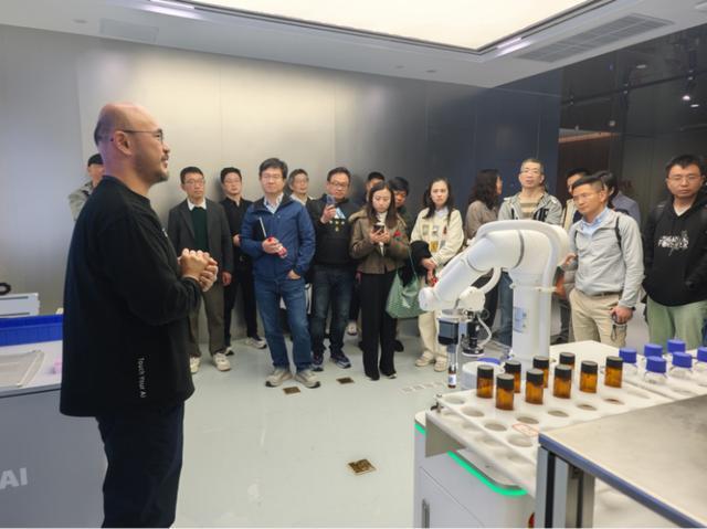 譬如,首席商业评论主编卫明在上周五与Darden商学院校友们一起参访了辛顿人工智能科技有限公司,其CEO李科频介绍了公司聚焦智慧实验室、智能制造、智能巡检三大场景而打造的移动复合机器人等解决方案。他强调,辛顿AI不追求单一硬件堆砌,而是通过模组化迭代、统一底层控制、多模态感知和强化学习,让机器人实现高精度、高灵活、低成本落地。在现场的展示中,辛顿AI的机器人展现了毫米级末端定位与厘米级导航精度,以及其在生物、化学、材料等实验室中无人化作业、多孔板搬运、设备操作、样本转运等能力。