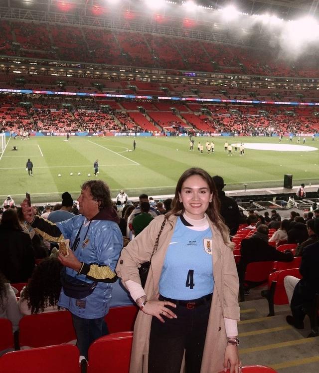日前,阿劳霍爱妻阿比盖尔-奥莉维拉发布了社交媒体动态,动态显示她来到伦敦,现场观看了乌拉圭vs英格兰的比赛。