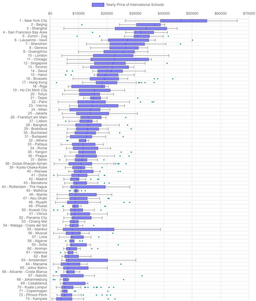 这是什么概念?如果用「奢侈品」在比喻一所国际学校,那么它在中国内地的售价无疑处于第一梯队,明显高于全球大部分城市。