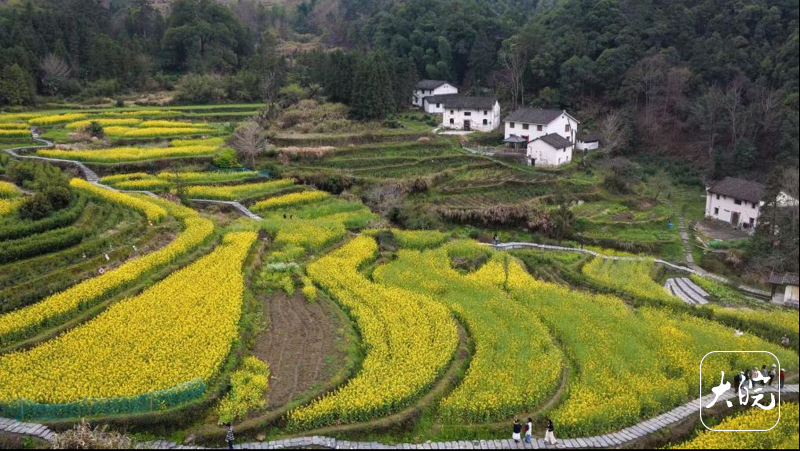 站在白石岭高处远望,层层梯田里,明黄的油菜花肆意绽放,与粉墙黛瓦的古民居、连绵青山相映成趣。采风团成员漫步其间,用镜头定格下“人在画中游”的诗意瞬间。据白石岭原生宿集主管吴志月介绍,春季油菜花海与秋季富硒稻浪构成了村落的核心景观,让这里实现了“四季可游”的生态吸引力。