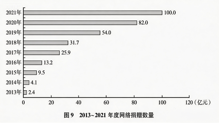 据《中国慈善发展报告(2023)》,从2013年到2021年,互联网公众募款金额增长了40.6倍。(图_报告制图)