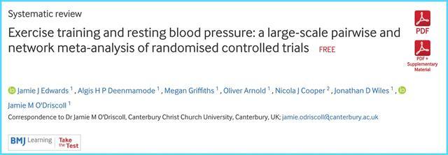 英国坎特伯雷大学的研究人员在BMJ子刊《英国运动医学》杂志上发表的研究发现,抗阻运动可以让血压降低8.24/4mmHg!