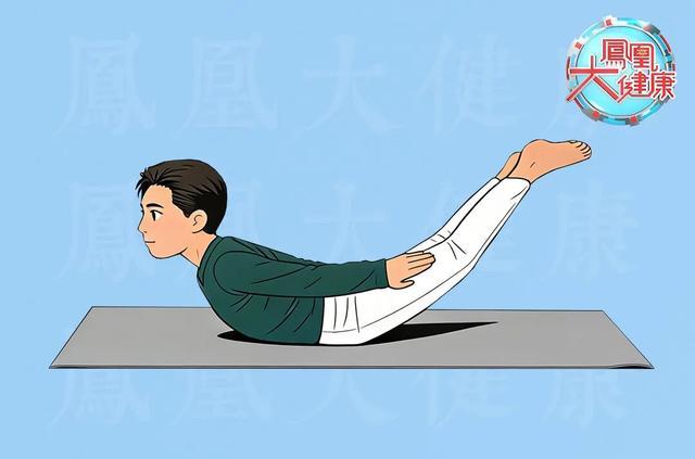做完握拳,咱们换个难度——躺在床上,脸朝下,双手放两侧,同时抬起头和双脚(像燕子飞一样)。能做到吗?