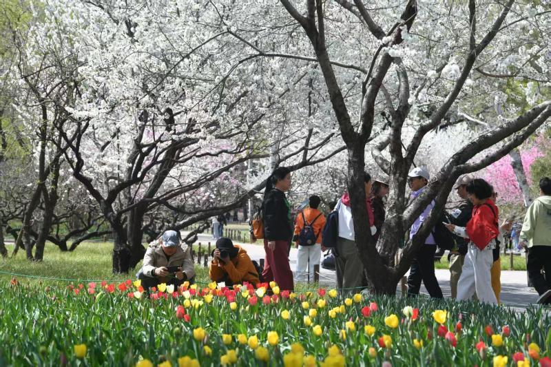 春日赏花是国家植物园清明期间的特色亮点,多条景观大道与园区景致各有风情。桃花大道上,国家植物园(北园)拥有自主知识产权的“品虹”桃、“品霞”桃灿若霞光,与洁白的“白花山碧桃”交相辉映,填补了山桃与碧桃之间的花期断档;梅园水畔,栈道两侧的“美人梅”傲然绽放,远山近梅相映成画,尽显诗情画意;樱花大道上,多个品种的樱花淡雅盛开,花瓣轻盈如絮,风过花影摇曳,宛若浪漫仙境。