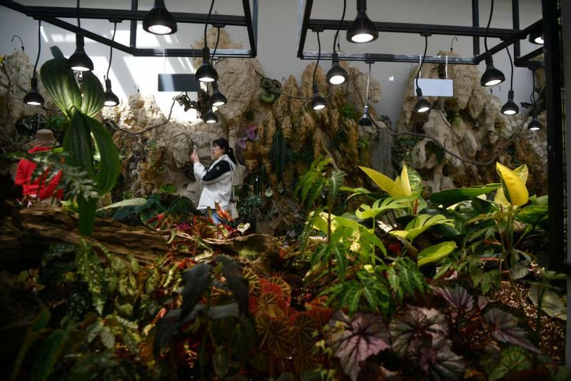作为本次春日游园的核心亮点,升级后的低温温室以“动植物共生”为核心,打造了一场兼具观赏性与科普性的主题展览。展览依托“秋海棠区”“蕨世之森”“捕食者花园”三大展区,集中展示秋海棠、蕨类、食虫植物等500余种(含品种),同时引入爬宠、昆虫及两栖动物40余种,展现“万物共生”的生态智慧。其中,“秋海棠区”展出170余种(含品种)秋海棠,包括黑峰秋海棠、蛛网脉秋海棠等国家二级重点保护野生植物;“蕨世之森”展区汇聚近百种珍稀濒危植物,荷叶铁线蕨、桫椤等国家重点保护野生植物集中亮相;“捕食者花园”展区则展示60多种(含品种和杂交种)食虫植物,解锁其独特生存策略。