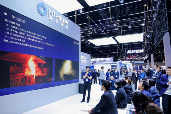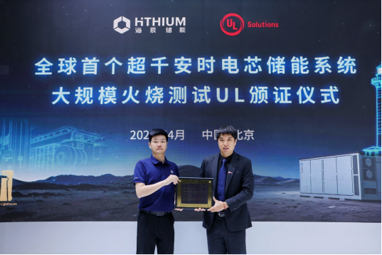 展会期间,海辰储能举办了“全球首个超千安时电芯储能系统大规模火烧测试UL颁证仪式”。会上,海辰储能燃烧试验项目负责人、消防设计高级工程师陈佳武 ,详细介绍了试验的设计思路与执行过程,现场播放的试验视频全景展现了测试全流程、关键技术节点和最终数据成果。