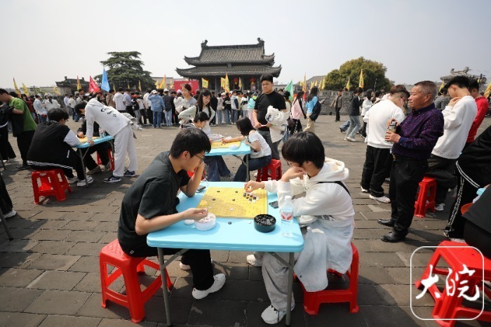 游人在寿州古城宾阳门城楼上听大鼓书。