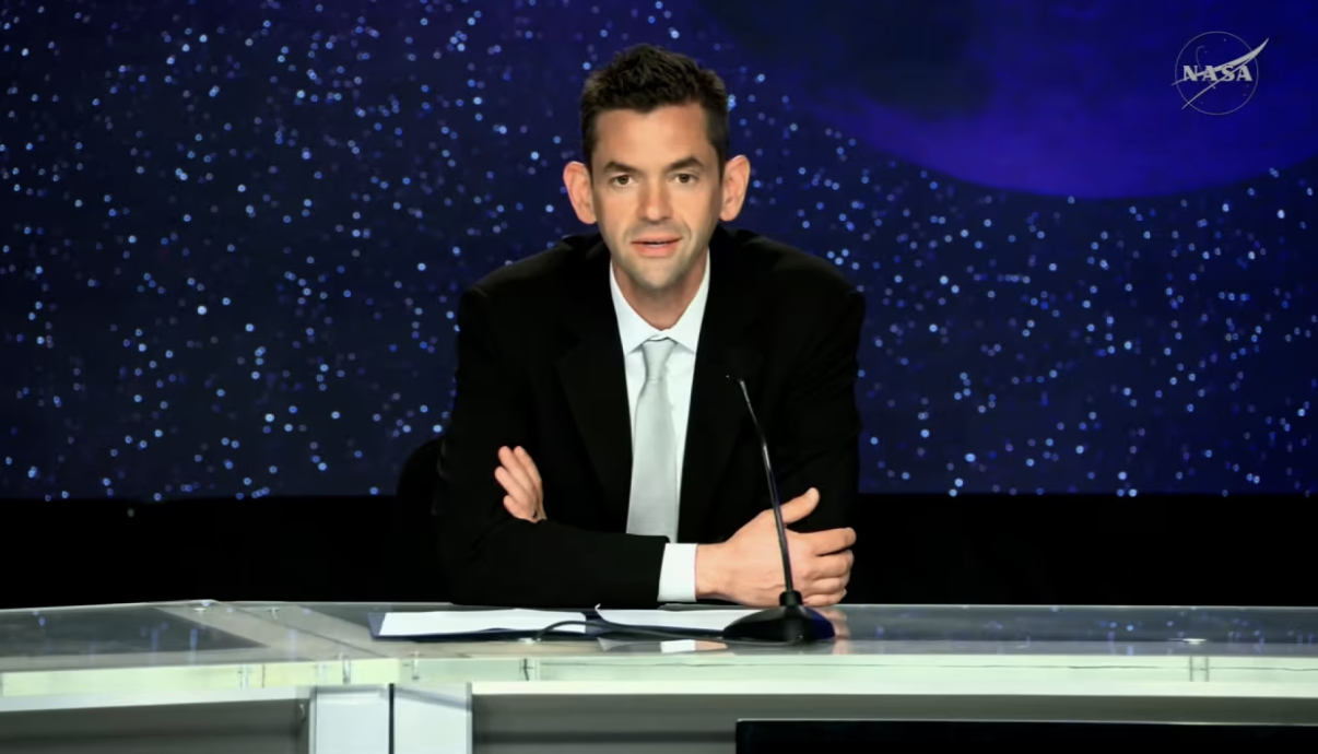 当地时间4月1日,艾萨克曼在肯尼迪航天中心举行的新闻发布会上发表讲话。图自外媒