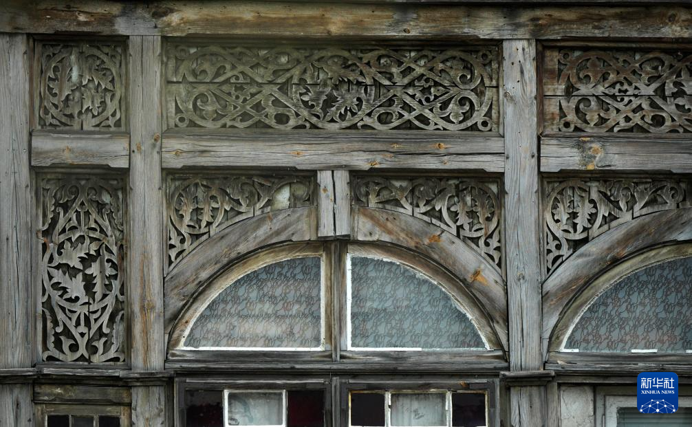 这是3月30日在波兰奥特沃茨克拍摄的一座“希维德马耶尔”风格建筑的雕花装饰。