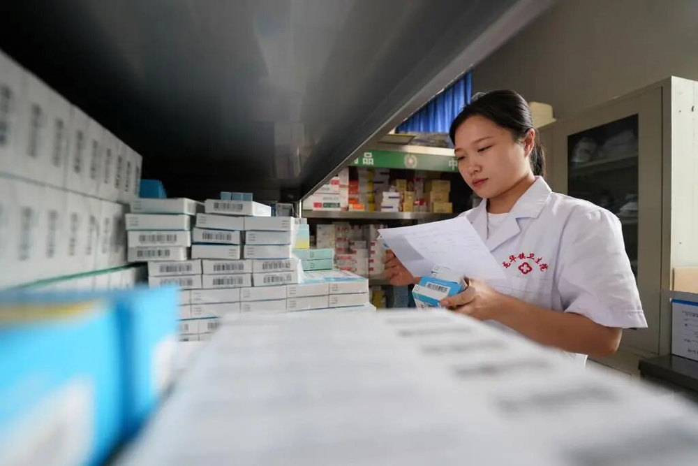 某镇卫生院药房工作人员在为患者取药。资料图:新华社