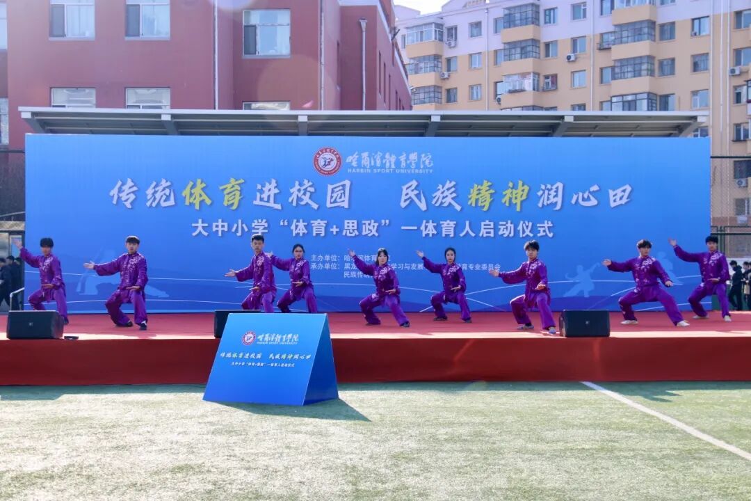 为全面推进健康学校建设,4月1日由哈尔滨体育学院依托大中小学校民族传统体育课程建设联盟发起的传统体育进校园活动在哈体院正式启动。主要目的是把文化自信融入日常教育,用民族精神启润学生心田,让大中小学生在运动中感悟文化底蕴,传承民族精神,实现“以体育人、以文化人”。哈体院民族传统体育学院负责人介绍,此次活动创新采用情景式思政公开课形式开展,是落实文化强国战略的具体实践,让文化自信的种子在青少年心中生根发芽;也是推动中华优秀传统文化创造性转化、创新性发展的具体行动,更是用体育培根铸魂、以精神启智润心的重要载体。