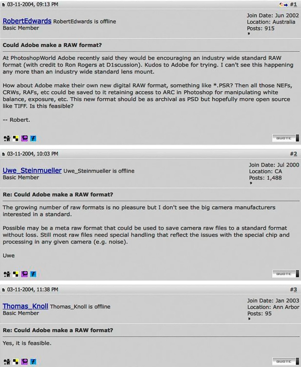 2004年3月,澳大利亚摄影师罗伯特·爱德华兹在一个摄影论坛上敲下一行字:Adobe 能不能做一个通用的 RAW 格式?