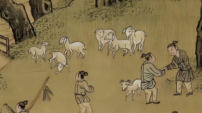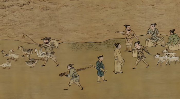 仇英的画笔,还藏着明代江南饮食文化的经济密码。画中频繁出现的白鹅与山羊,背后与明武宗的一道圣旨密切相关。明武宗朱厚照生肖属猪,又姓“朱”,与“猪”同音,南巡时听闻民间杀猪过年,当即下令禁止养猪。禁令之下,祭祀用猪被羊替代,羊肉消费随之增加,苏州城内食羊之风由此日盛。而白鹅在明代被视为尊贵菜肴,据明代《宛署杂记》记载,官方宴席分为四等,只有最高规格的“上席”才可用鹅。画中仇英所绘之鹅,正是这一饮食风尚的生动记录。这些看似不起眼的细节,恰恰构成了历史研究中最珍贵的生活切片,让一幅静态的画作拥有了呼吸与温度。