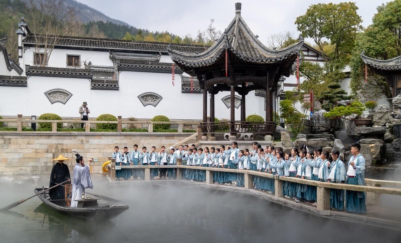 4月1日开始,一批批研学团队有序进入青阳县陵阳镇屈原文化园。孩子们身着古装,沉浸式感受“路漫漫其修远兮,吾将上下而求索”的意境与爱国情怀。据介绍,针对春假,青阳县开发推出了九子岩自然文化研旅基地、宝镁轻合金工业研旅基地、屈原文化旅游区研旅基地、天下粮仓九华神龙谷研旅基地、青阳腔博物馆非遗研旅基地等多条研学线路,并受到各方好评与欢迎。