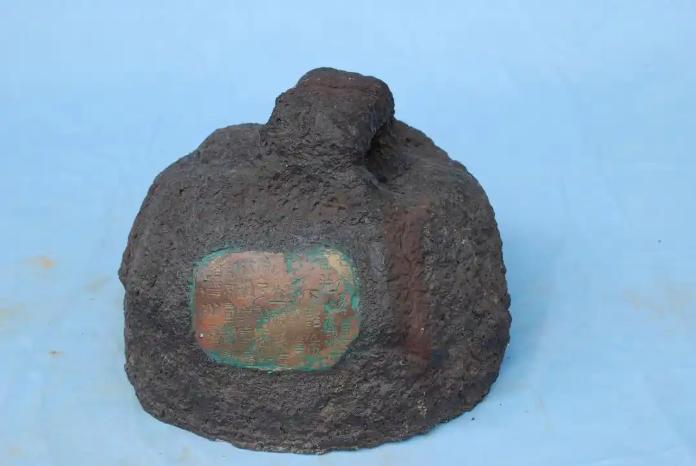 在山东文登博物馆,有一枚浑身铁锈的铁疙瘩,长得像个大秤砣。