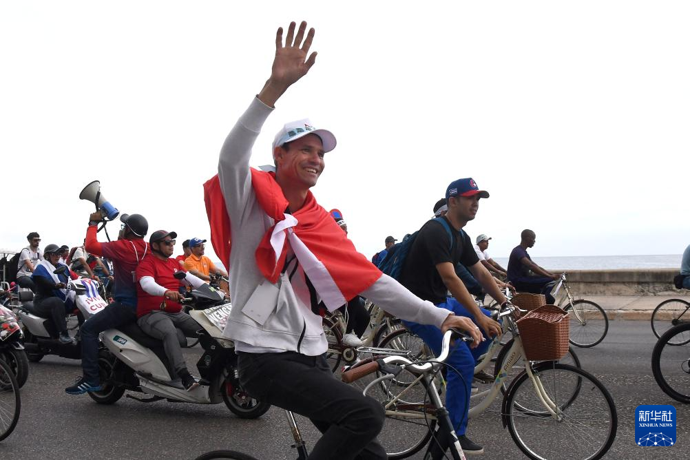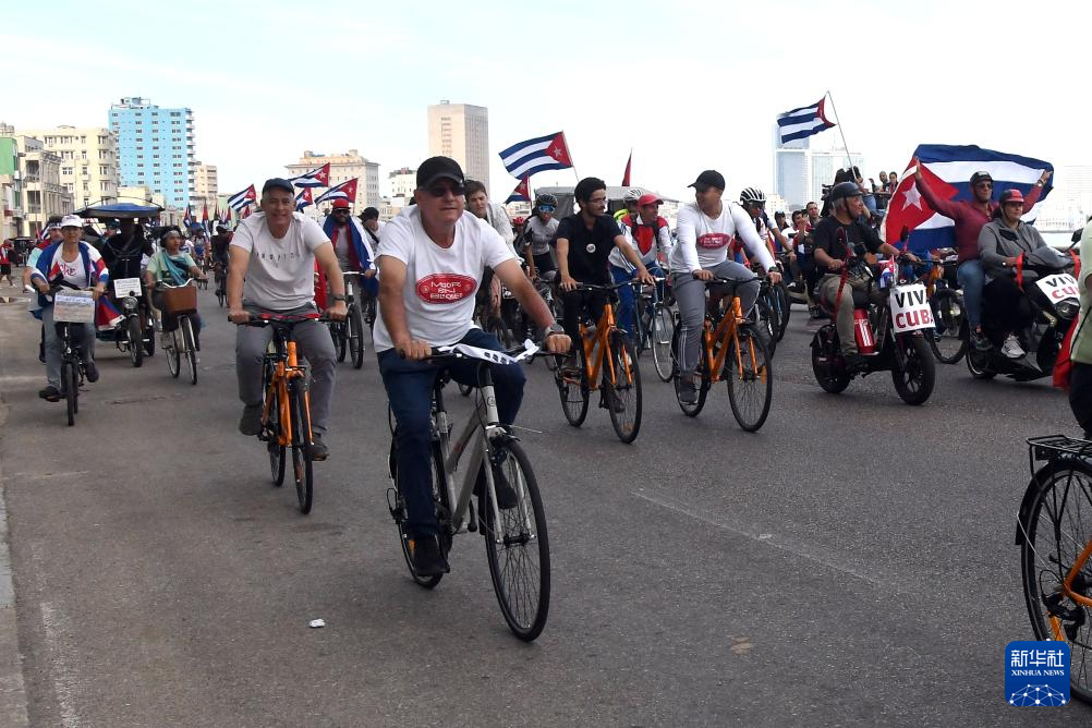 当天,由自行车、三轮车、电动车等组成的车队沿哈瓦那约7公里长的海滨大道行进。参与者挥舞古巴国旗,不少车辆张贴已故古巴革命领袖菲德尔·卡斯特罗的照片,并配以“古巴人民必胜”的标语。