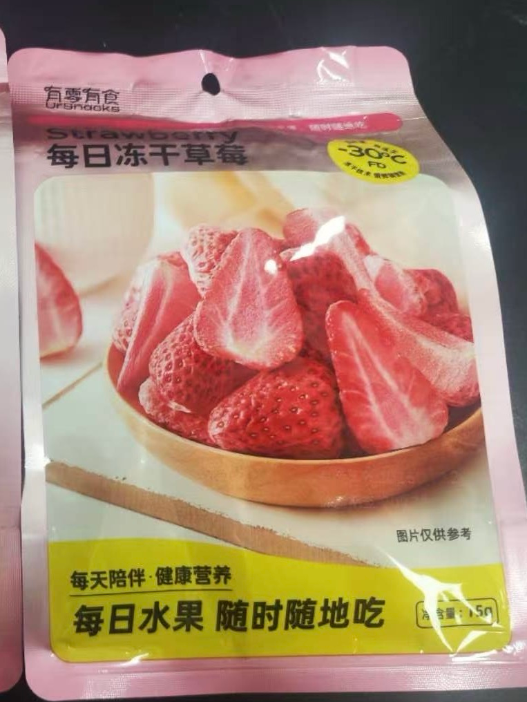 冻干食品加工行业的业内人士表示,新鲜草莓经过脱水加工生产出冻干草莓,其产出比通常为“10:1”。市售的冻干产品,普遍需要对冻干草莓泡糖水等深加工程序,“大约1公斤冻干草莓,能生产出2.2公斤至2.7公斤的市售产品。”
