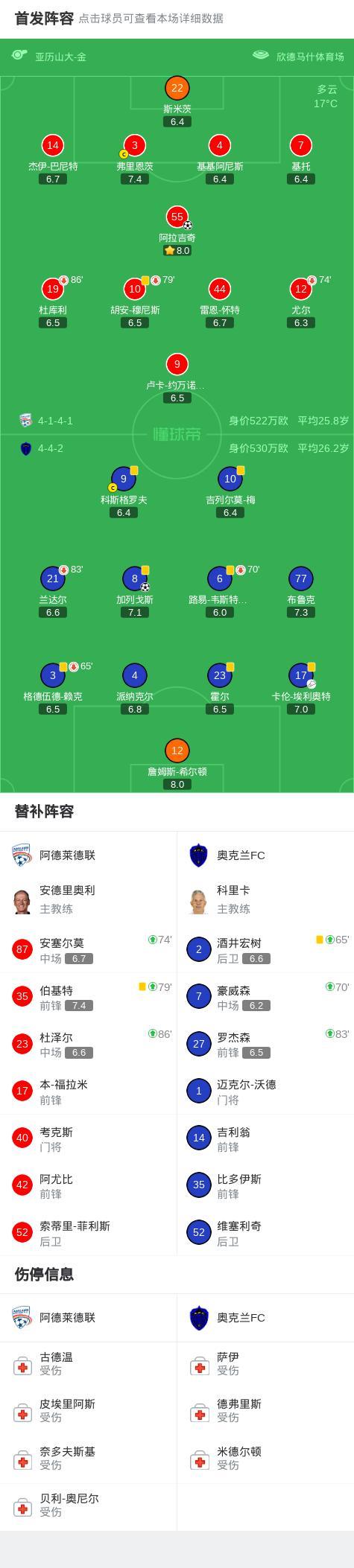 第25分钟,阿拉吉奇远射破门,阿德莱德联1-0奥克兰FC
