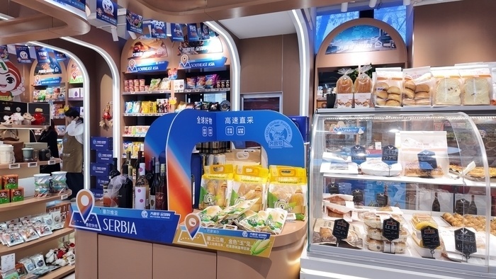 走进“齐鲁号·全球购”上新街店,市民既能品尝特地现制烘焙区每日新鲜出炉的鲜奶面包,也能随手选购来自俄罗斯的安格斯谷饲牛肉、巴伦支海帝王蟹,或是西班牙、葡萄牙的国礼级酒水,还有塞尔维亚特色白兰地……一家店,浓缩了亚欧大陆的万国风味。