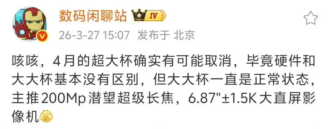 网传新机全系标配1英寸大底主摄,f/1.4-f/4.0可变光圈,进光量提升40% ,暗光拍摄更清晰。而Pro/Pro Max版本的长焦端,搭载1/1.28英寸超大底2亿像素潜望镜头,支持3.5-10倍连续光学变焦。