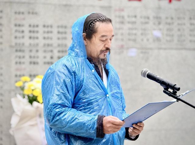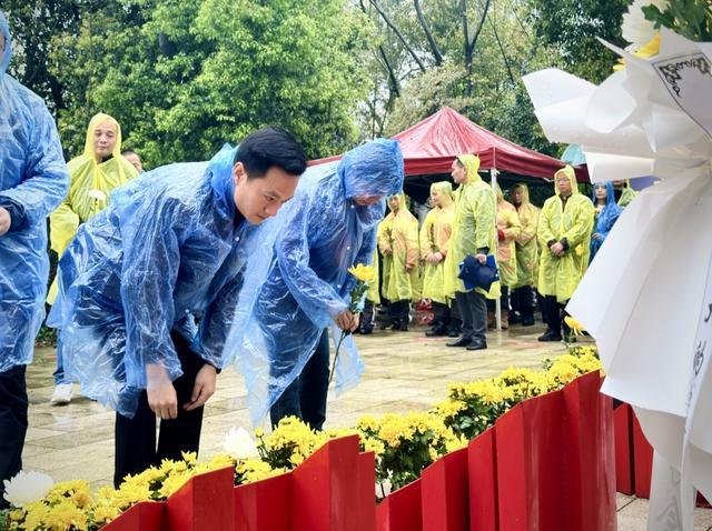 活动最后,所有人依次走向纪念碑,俯身放下手中的花。黄的、白的,一朵一朵,安静地躺在碑前,雨水打湿了花瓣,让它们显得格外素净。